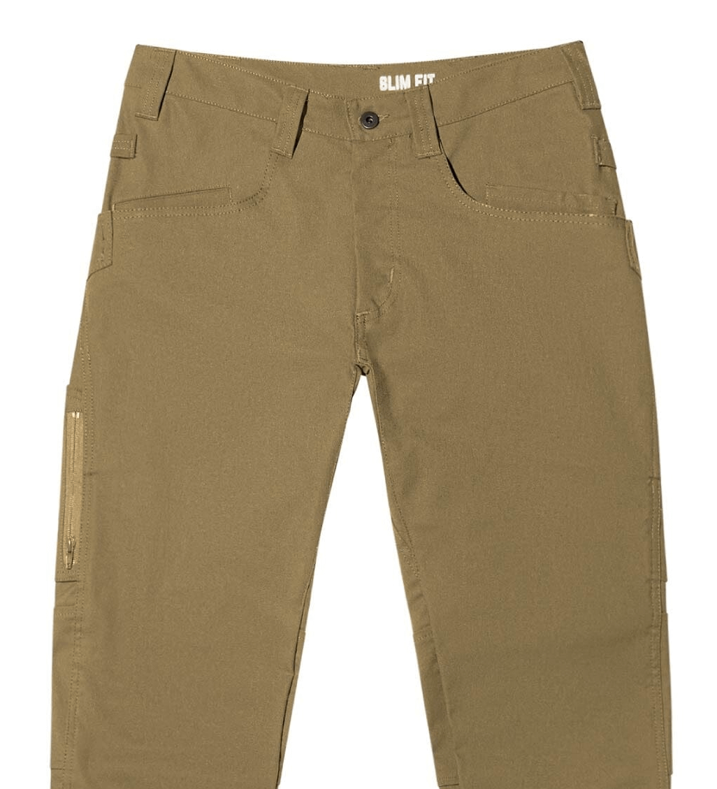 The pocket functionality and utility storage that you would expect from a cargo pant, but upgraded with concealed inner welt pockets, and a low profile zippered pocket.