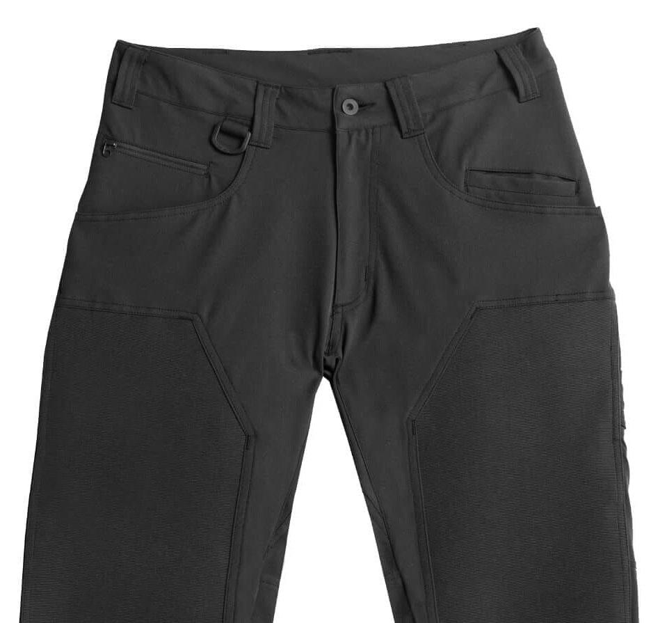 11 EDC compatible utility pockets, right side mobile utility pocket, left side utility pocket, gusseted crotch, articulated knees