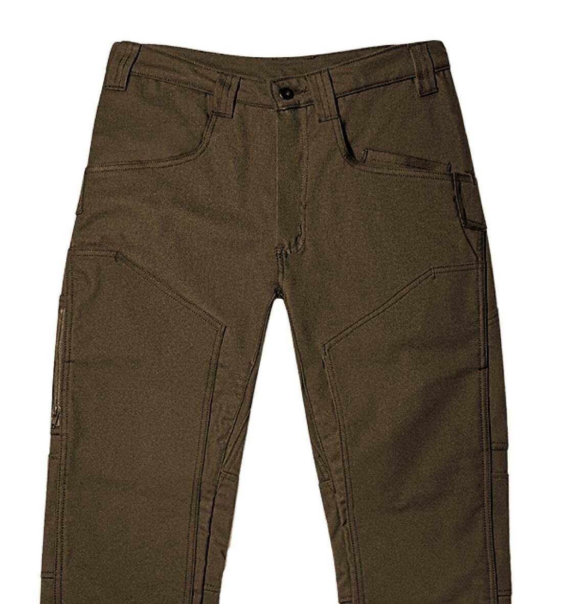 Kneepad insert compatible double front design, 11 EDC compatible utility pockets, right side mobile utility pocket, left side utility pocket, gusseted crotch, articulated knees